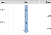 - 고립성 (Isolation): 한 transaction을 구성하는 쿼리문들이 실행되는 중간에 다른 transaction의 쿼리문이 끼어들지 못 하게 하는 특성을 말한다.