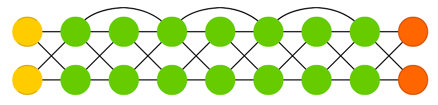 DRN은 "인공신경망에서 계층이 많아질 수록 성능이 증가하는가?"라는 딥 러닝의 근본적인 질문에서부터 시작한다. DRN 논문의 실험에서는 계층이 많아질 수록 성능이 향상되지 않았으며, 오히려 성능이 하락하는 문제까지 발생했었다. 인공신경망이 깊어질 수록 성능이 하락하는 문제는 계층이 많아질 수록 학습이 어려워진다는 점 때문에 발생하는데, 이를 해결하기 위해 DRN 논문의 저자들은 skip connection이라는 것을 제안했다. 일반적인 인공신경망에서는 데이터가 계층의 순서에 따라 순차적으로 전파되는 것에 비해 DRN에서는 데이터가 그림 8과 같이 다음 계층뿐만 아니라, 더 이후의 계층까지 직접 전달된다.