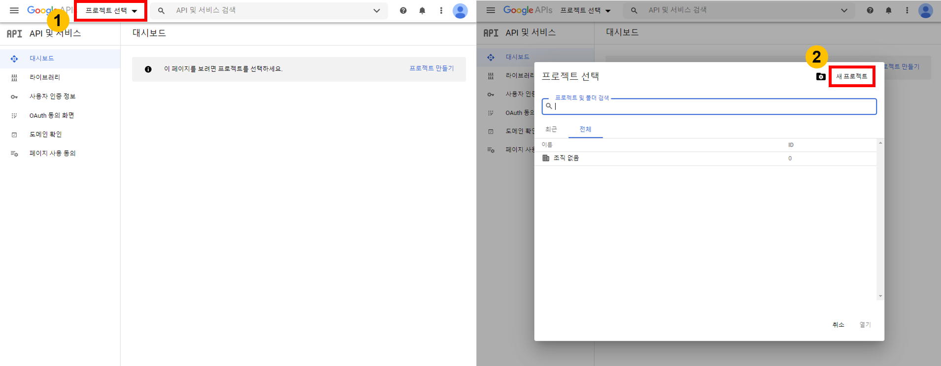 1.1. Google API 프로젝트 생성
